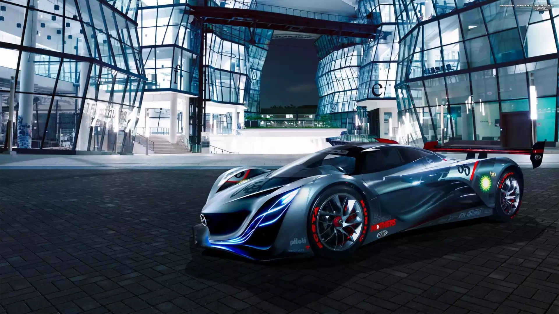 Niebo, Mazda, Furai Mazda Furai, Zakręt Budynki, Mazda, Furai Sport, Mazda Furai, Tor Mazda Furai, Wloty, Powietrza Samochód, Prototyp, Mazda, Rajdowy Spojler, Mazda Furai Ksenony, Tło, Mazda Furai, Szare Tunel, Mazda, Furai Fractalius, Mazda, Furai