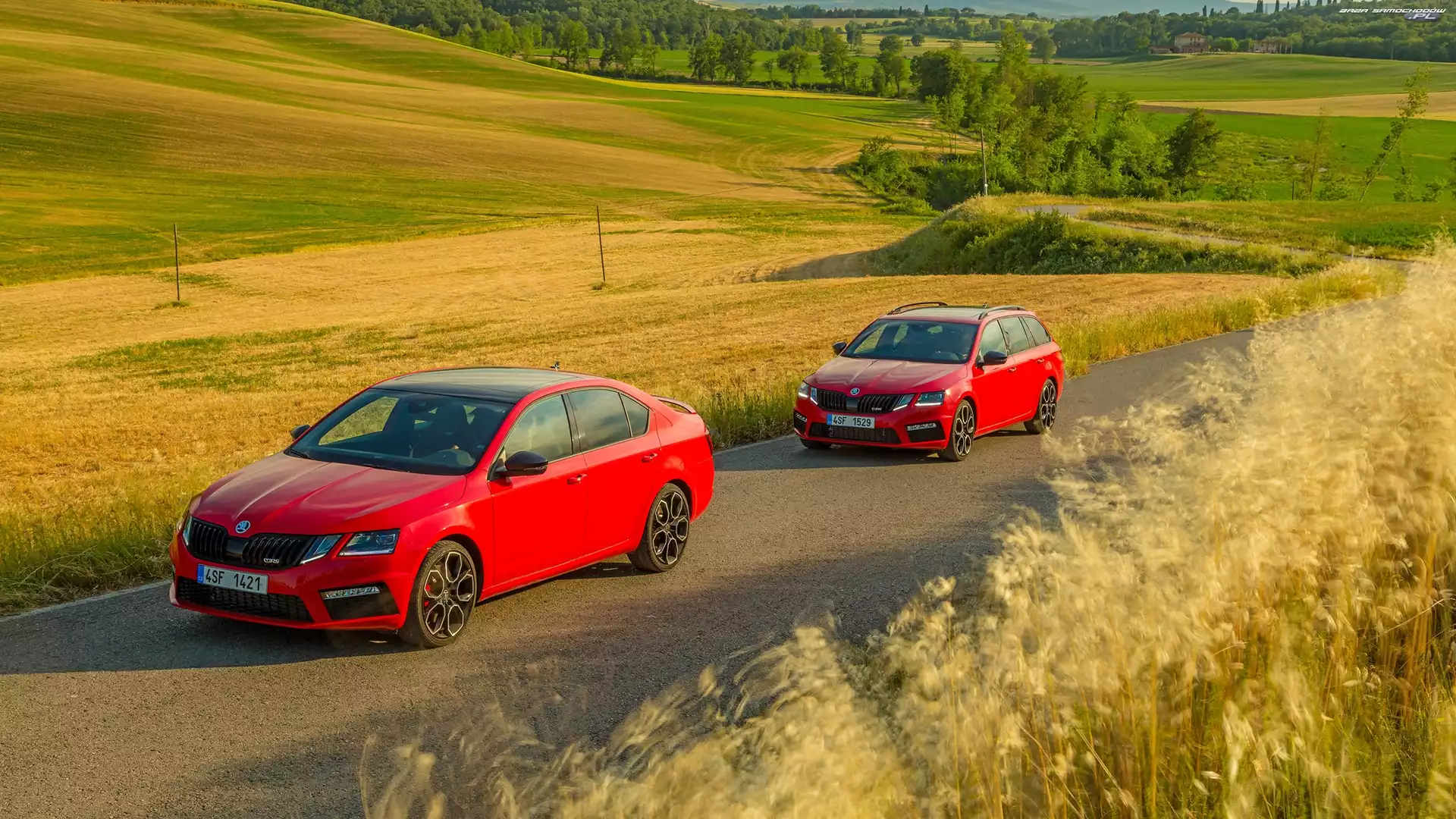 Pola, Dwa, Skoda Octavia III RS, Samochody, Droga, Skoda Octavia III Kombi, Czerwone- Zdjęcia samochodów