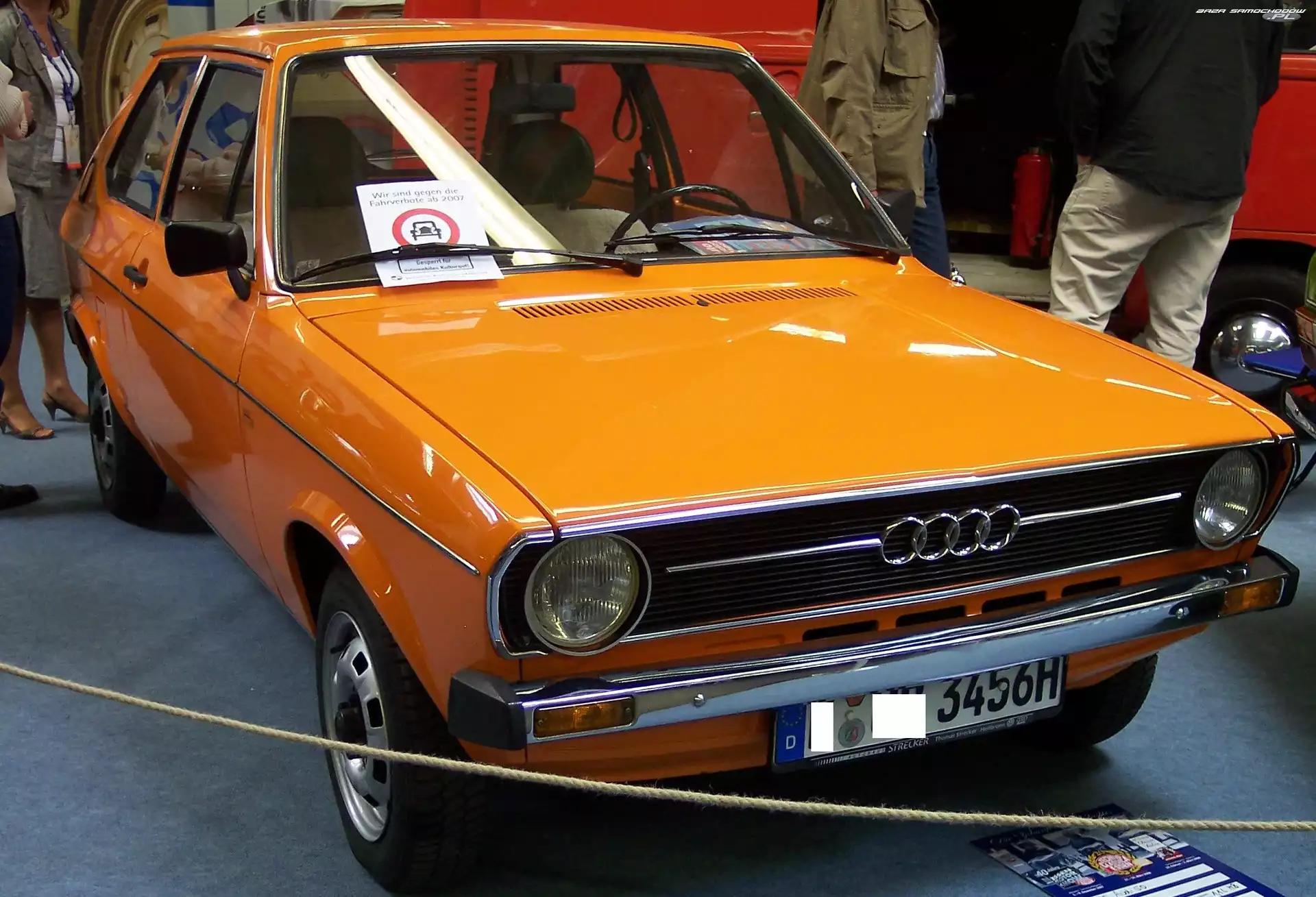 Audi 50 Reklama, Pomarańczowe, Audi 50 Prezentacja, Audi 50, Wystawa Wystawa, Audi 50, Salon Hatchback, Audi 50 Drzwi, Audi 50 Audi 50, Chrom, Przód, Zderzak